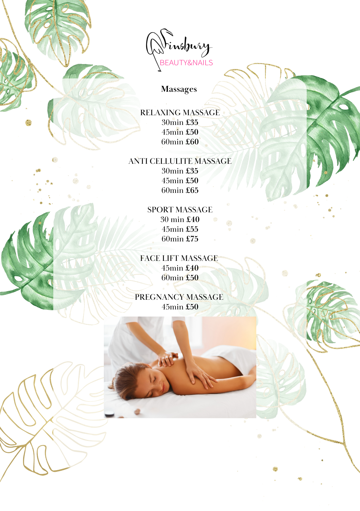 For a happier and healthier mind, body and soul, there is nothing more effective than a massage. At Finsbury Beauty&Nails, we offer a wide range of massage treatments and techniques to fulfil every need – each expertly performed by our experienced massage therapist. Whether you are looking for a massage to reduce stress and tension or improve the immune system and organ function, we can help you select the treatment that is best for you and your specific concerns.